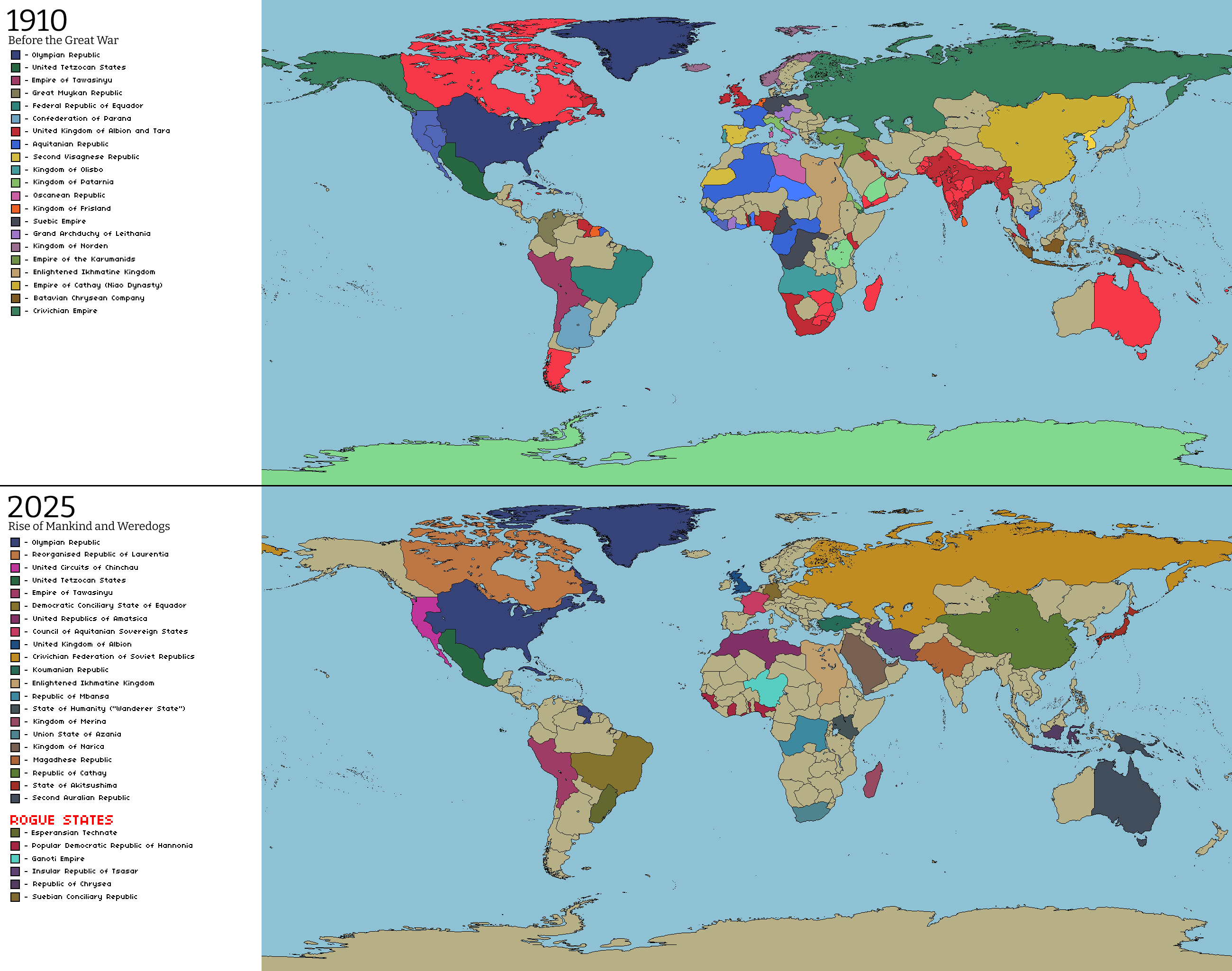 Chimeric Chronicles: The World in 1910 and 2025 by kefkorr on